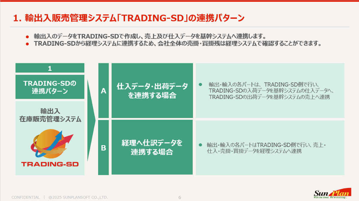 - 輸出入販売管理システム「TRADING-SD」の連携パターン